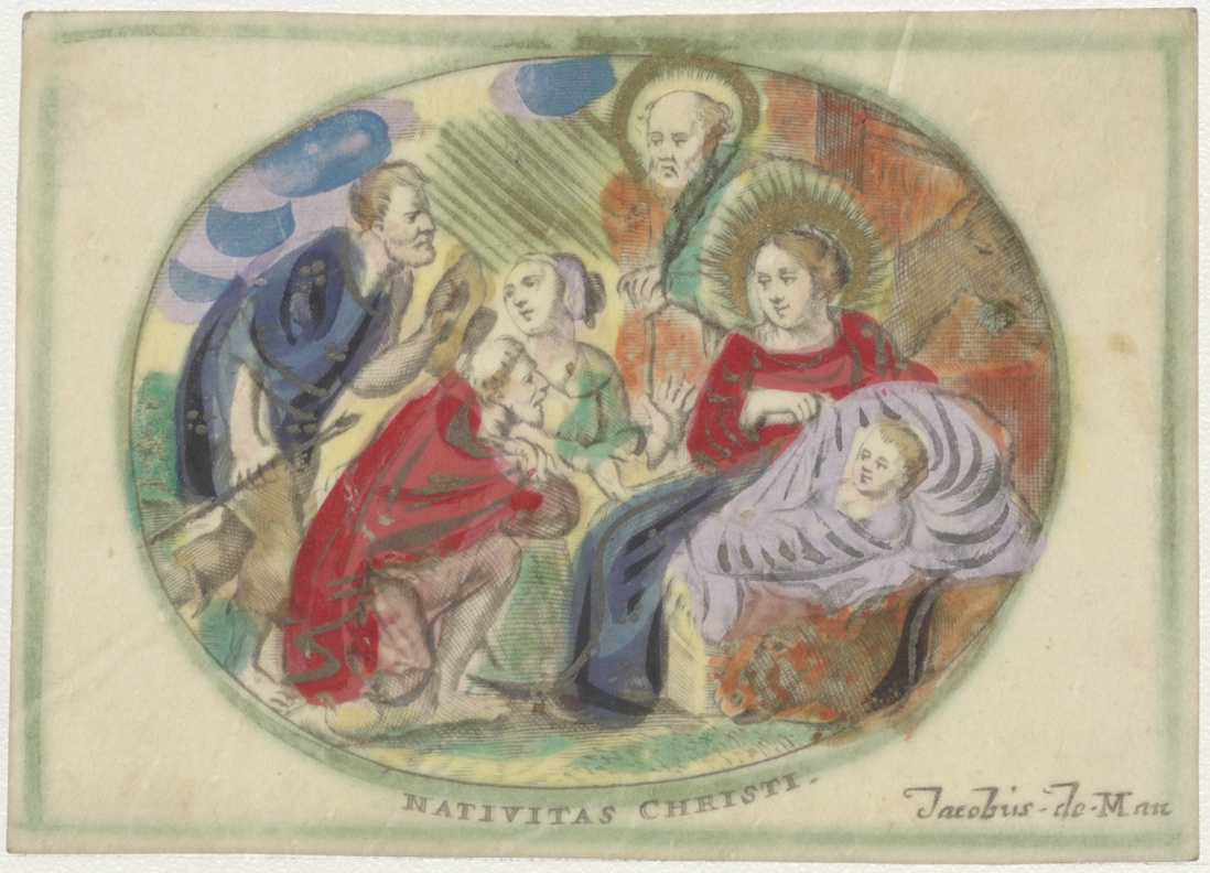 Geboorte van Christus, aanbidding der herders, ingekleurd