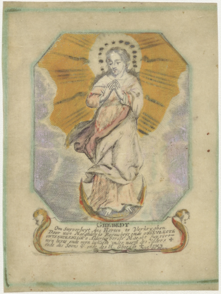 Maria, Onbevlekte Ontvangenis, met gebedje, ingekleurd