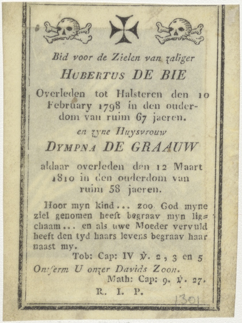 H. Gregorius, kz. Bid voor ziel De Bie (+1798);De Graauw (+1810);