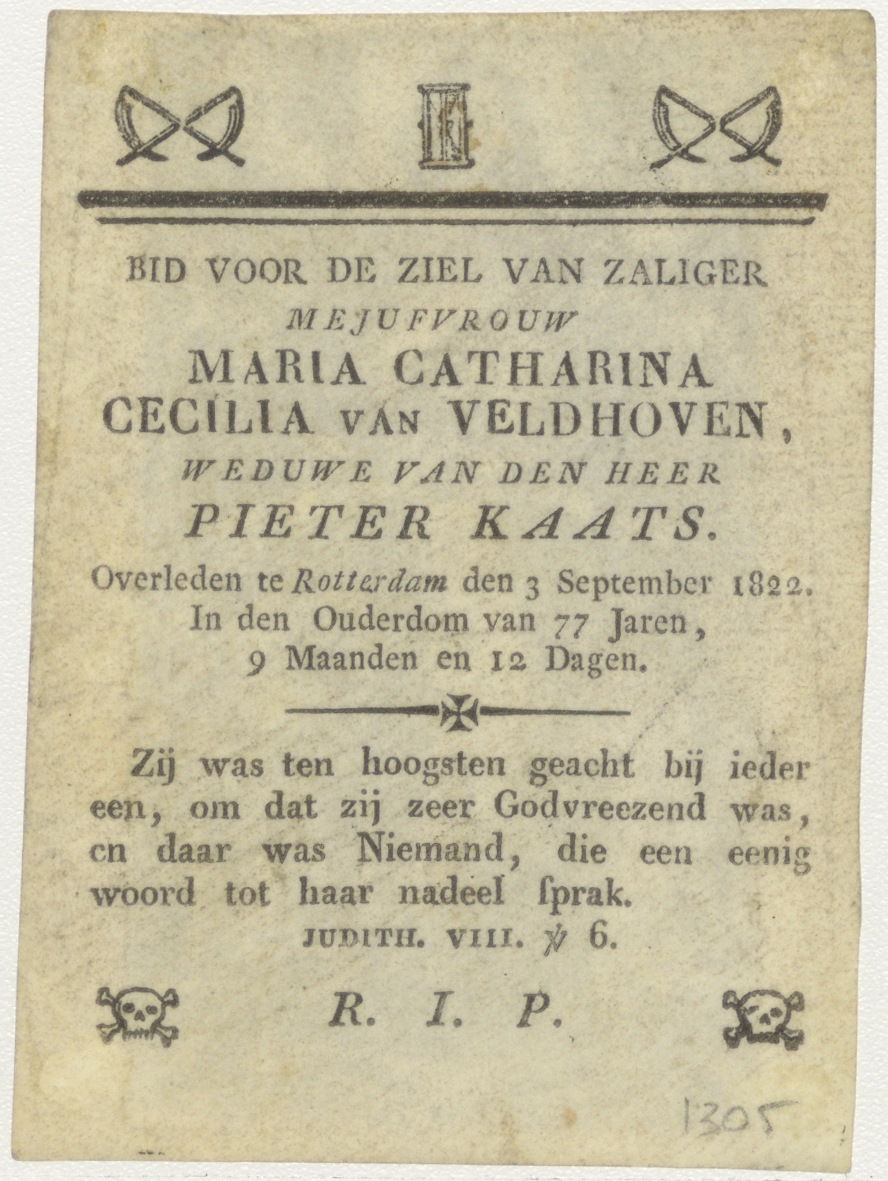 H. Maria de Mercede, kz. Bid voor ziel Maria Catharina Cecilia van Veldhoven (+1822), weduwe van Pieter Kaats