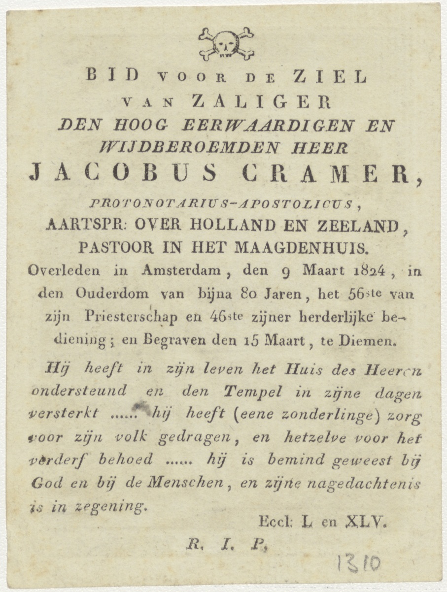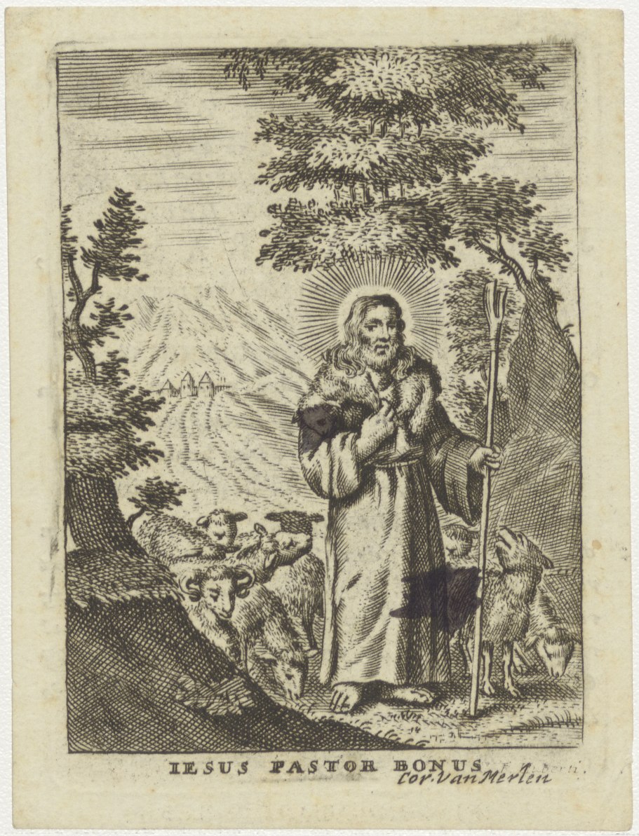 Pastor Bonus, Christus met schaap, kz. Religieus;Bid voor ziel Johannes Cramer (+1824);aartspriester over Holland en Zeeland, etc.