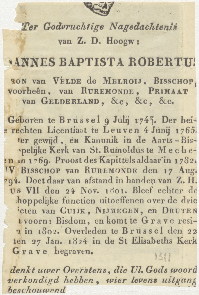 H. Marcus, kz. Religieus;Bid voor ziel Joannes Robertus (+1824);bisschop Roermond;
