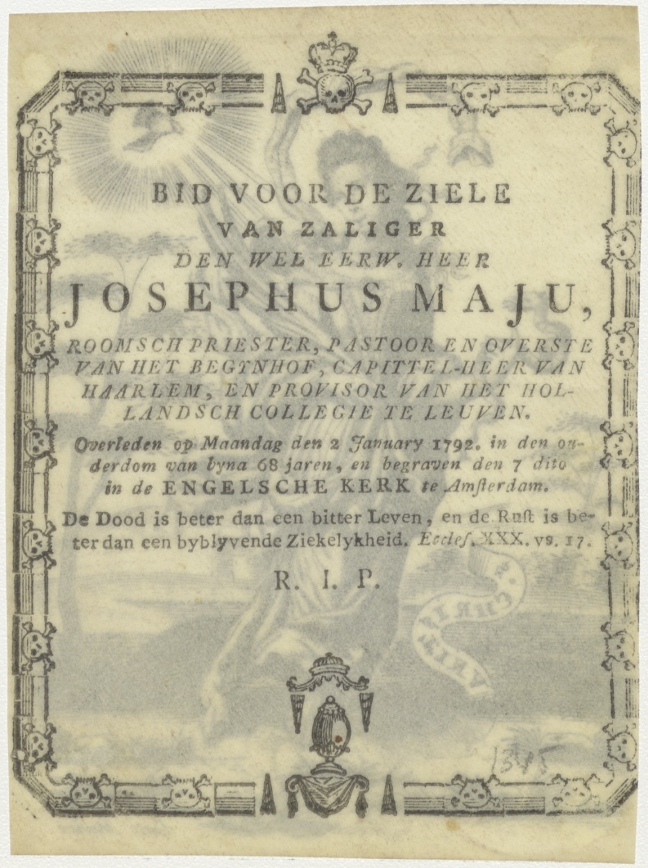H. Christina, kz. Religieus;Bid voor ziel Josephus Maju (+1792);pastoor Begijnhof, kapittelheer Haarlem