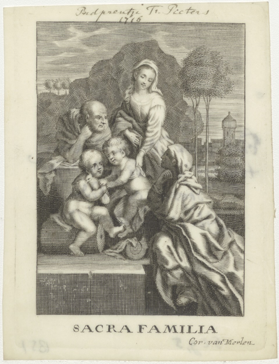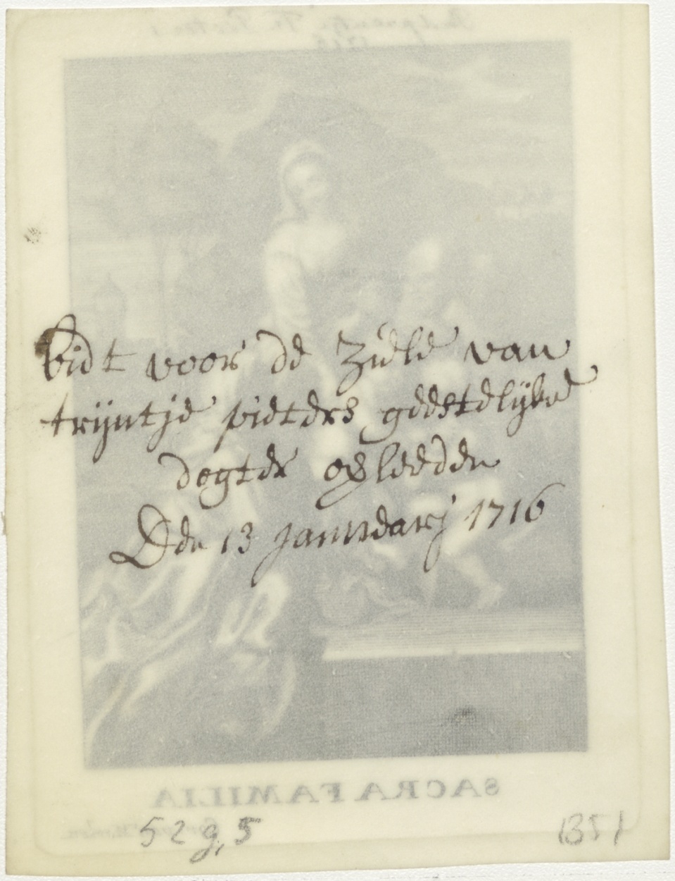 H. Familie, Johannes, Elisabeth, kz. Religieus;Bid voor ziel Twijntje Pieters (+1716);geestelijk dogter;