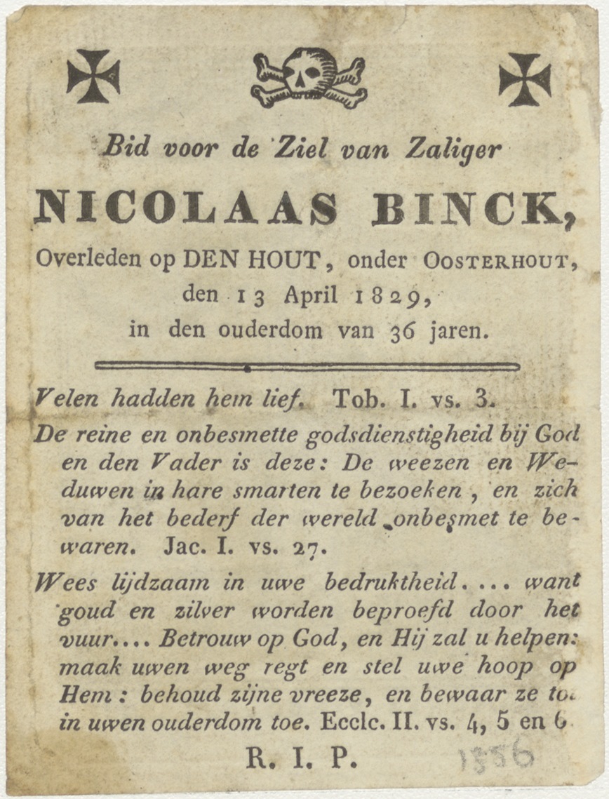 H. Agnes, kz. Bid voor ziel Binck (+1829);Oosterhout;