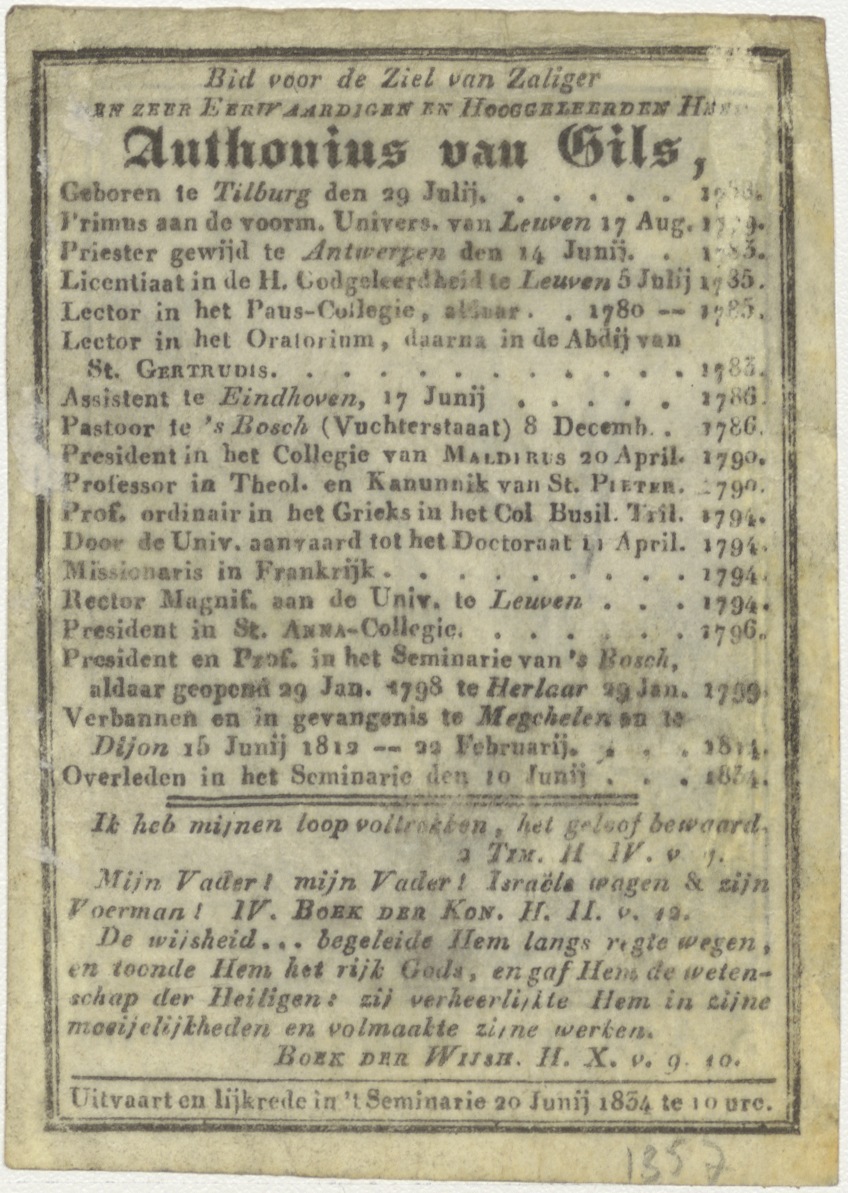 H. Agatha, kz. Religieus;Bid voor ziel Anthonius van Gils (+1834);priester, president seminarie Den Bosch;