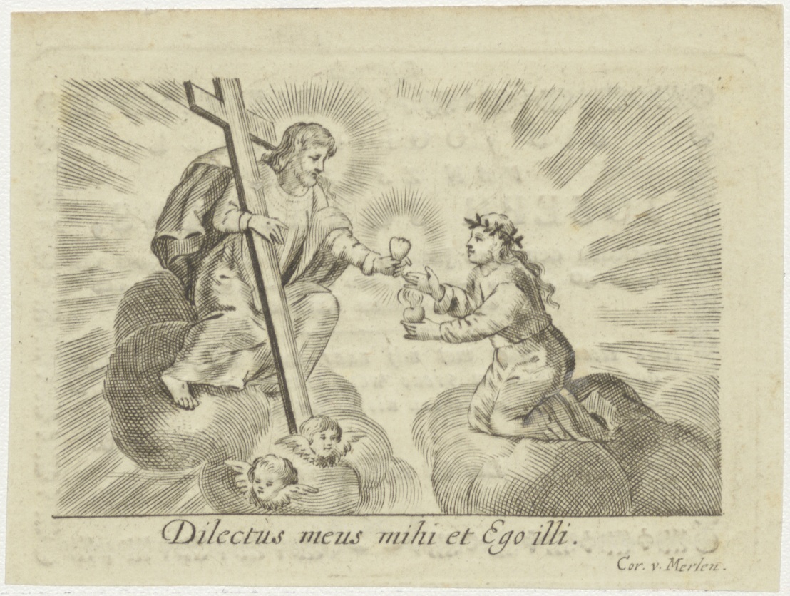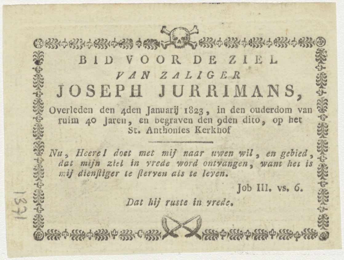 Christus geeft H. Hart aan vrouw op wolk, kz. Bid voor ziel Jurrimans (+1823);H. Antonius kerkhof;