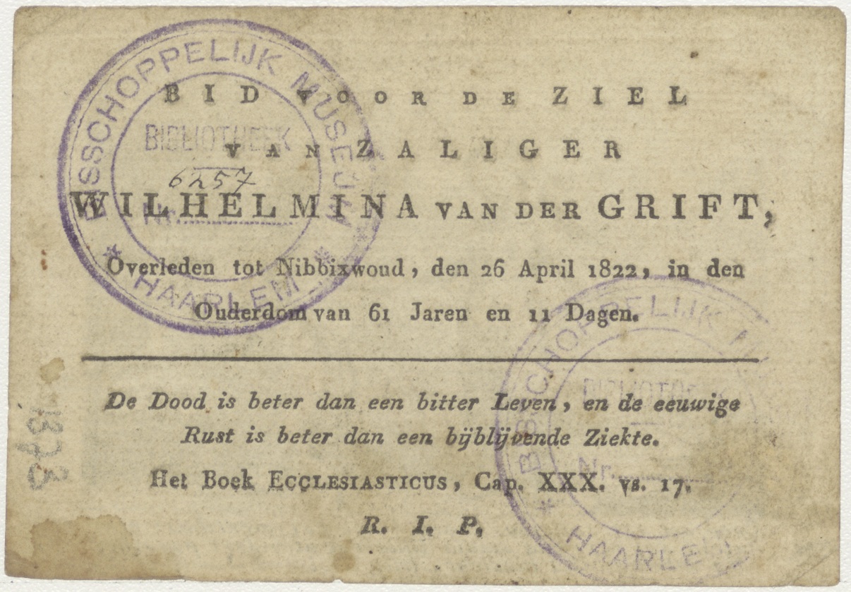 Amor divinus met boog en Anima ontmoeten elkaar, kz. Bid voor ziel Van der Grift (+1822);Nibbixwoud;