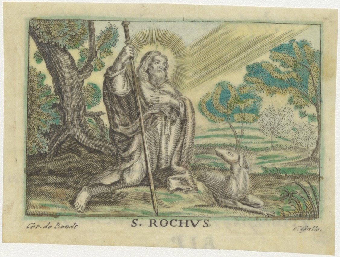 H. Rochus, ingekleurd, kz. Bid voor ziel Broekhuys (+1832);Amsterdam (Leidse Kerkhof;