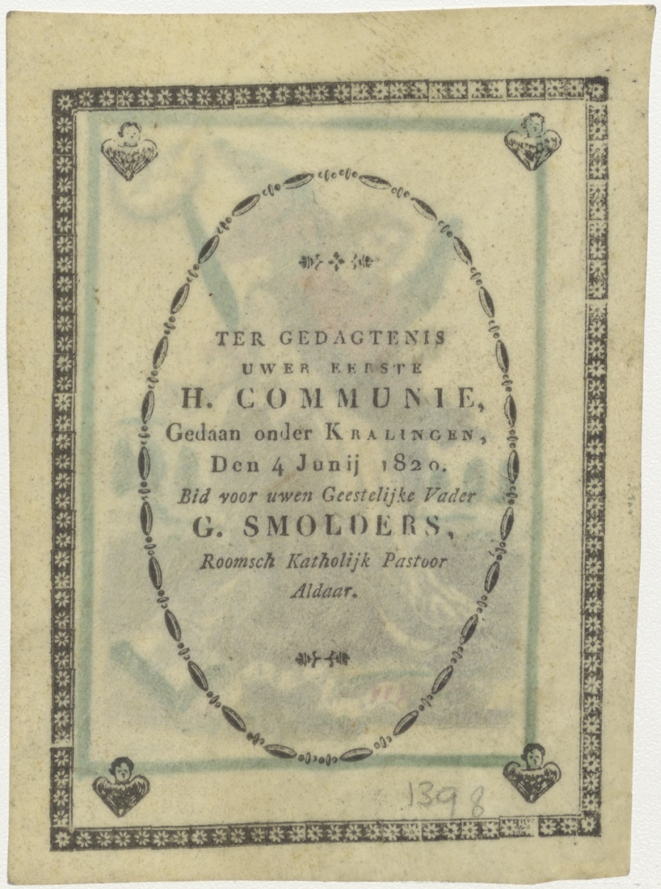 H. Teresia (Theresia), ingekleurd, kz. H. Communie Kralingen;1820;pastoor Smolders;