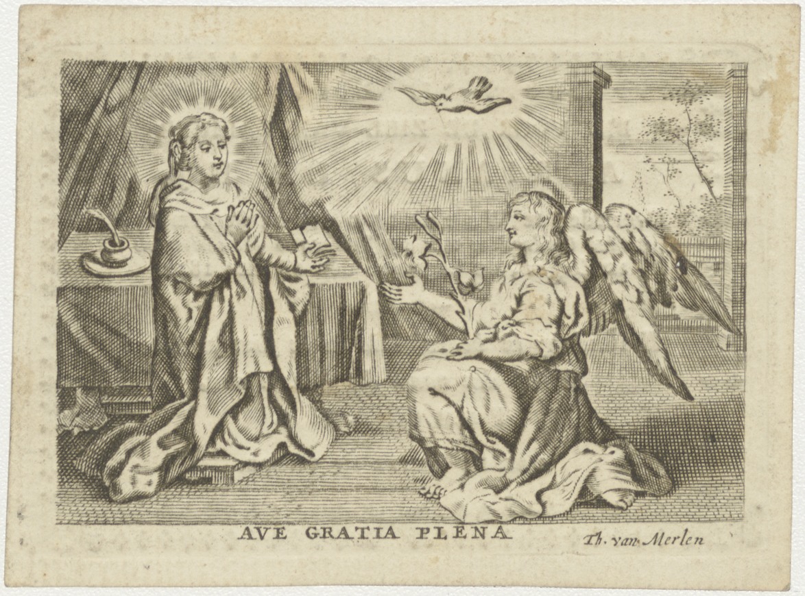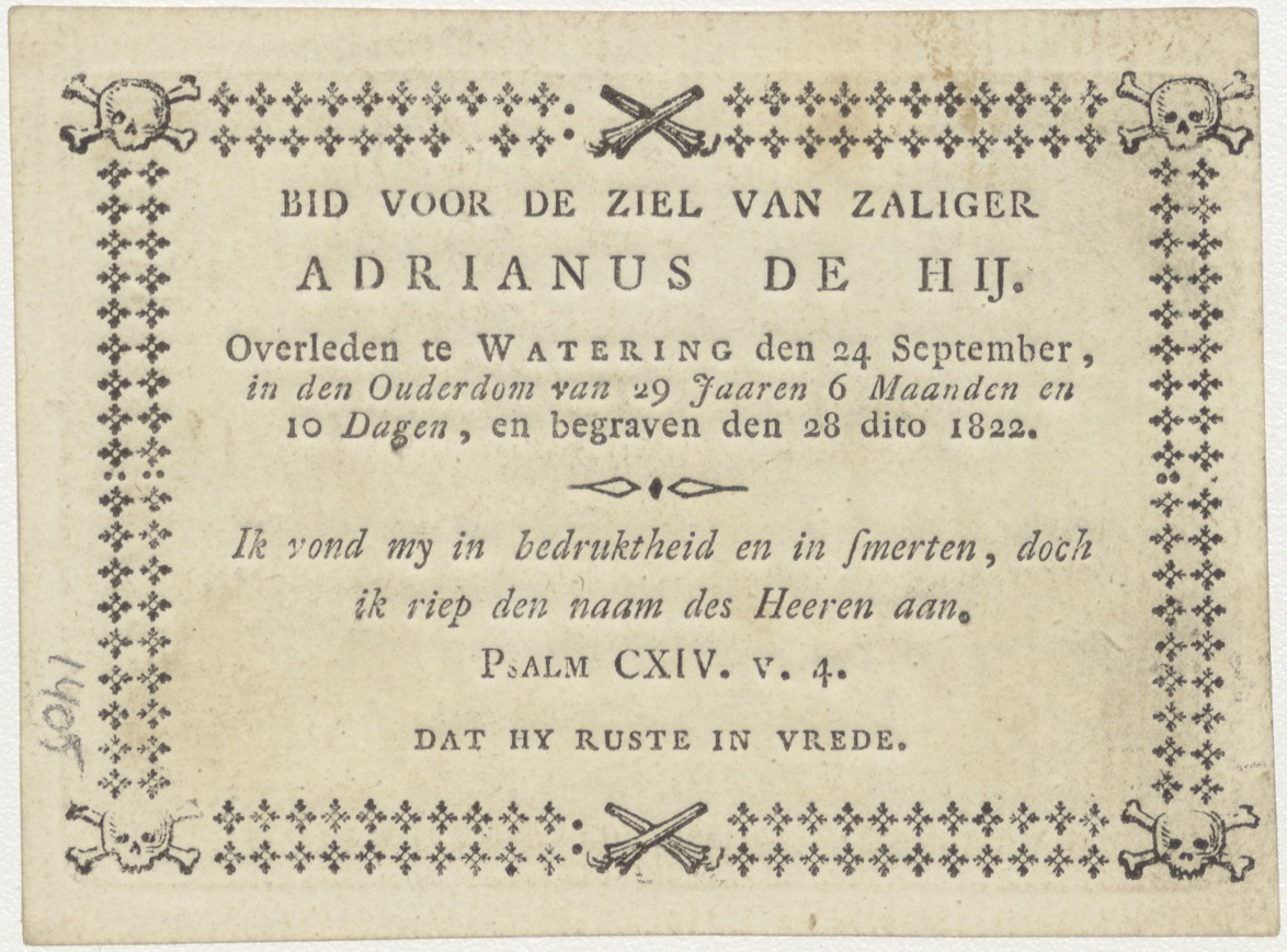 Annunciatie, Maria boodschap, kz. Bid voor ziel De Hij (+1822);Watering;
