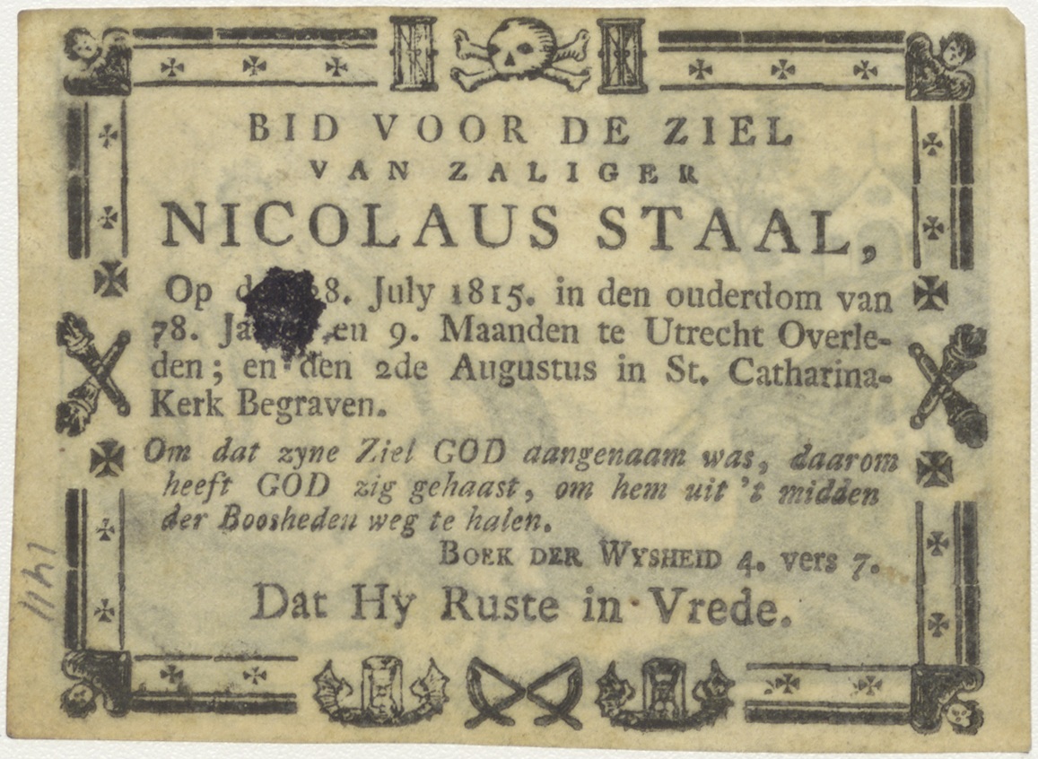 H. Dominicus, kz. Bid voor ziel Staal (+1815);Utrecht;