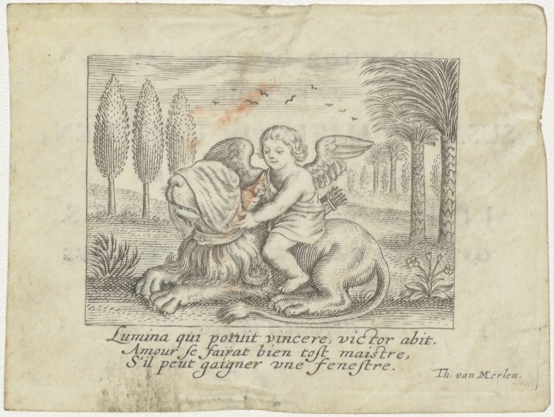 Amor en Anima, Liefde overwint, Amor blinddoekt leeuw, kz. Bid voor ziel Staats-Van Tongeren (+1772);Muiden;