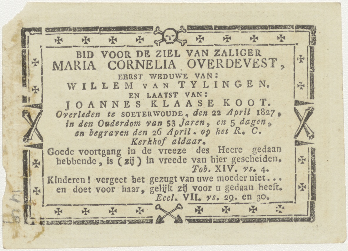 Christuskind op triomfwagen, kz. Bid voor ziel Koot-Tijlingen-Overdest (+1826);Zoeterwoude;