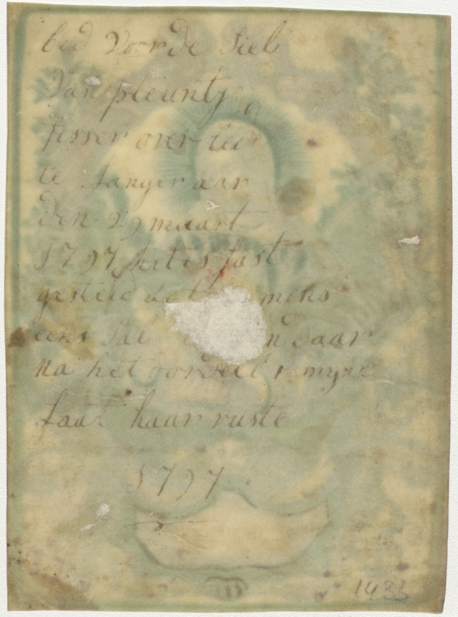 Anna en Maria(?), ingekleurd, kz. Bid voor ziel Langeraar (+1797)