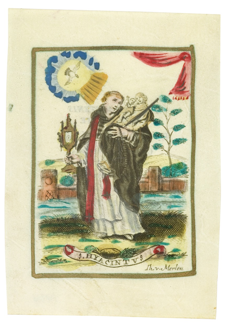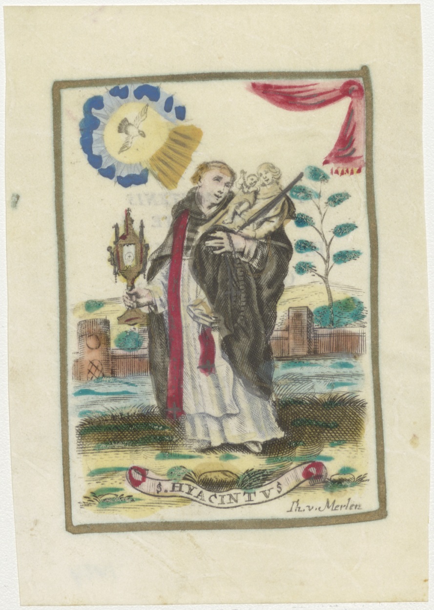 H. Hyacintus, ingekleurd, kz. H. Communie door pastoor Jacobus de Voys;Rotterdam;1827;