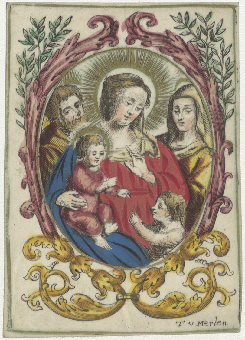 Maria met Christuskind, Johannes, Jozef en Elisabeth, ingekleurd