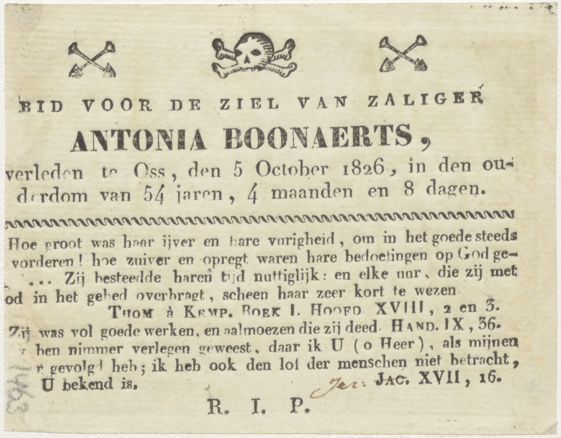 Annunciatie, Maria boodschap, kz. Bid voor ziel Boonaerts (+1826);Oss;