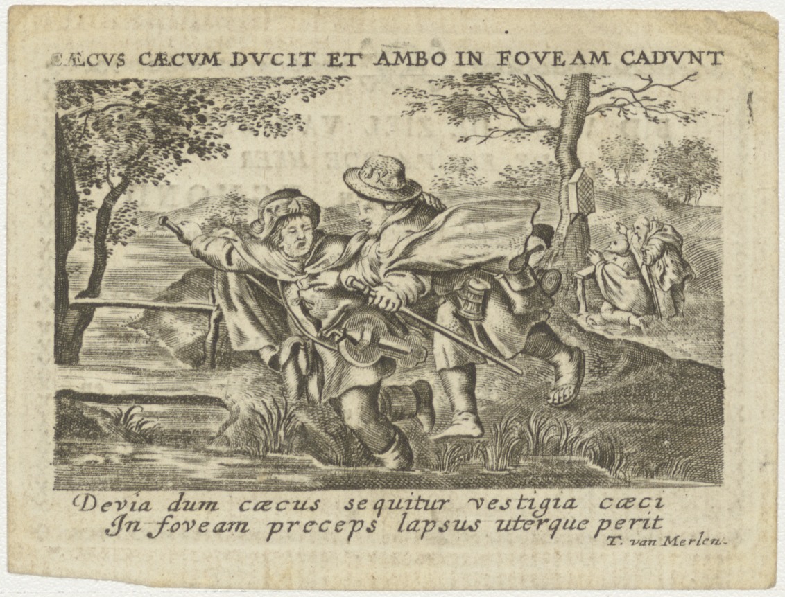 Twee zwervers in landschap, kz. Religieus;Bid voor ziel Wilhelmus van Egmond (+1819);pastoor te Leidschendam;