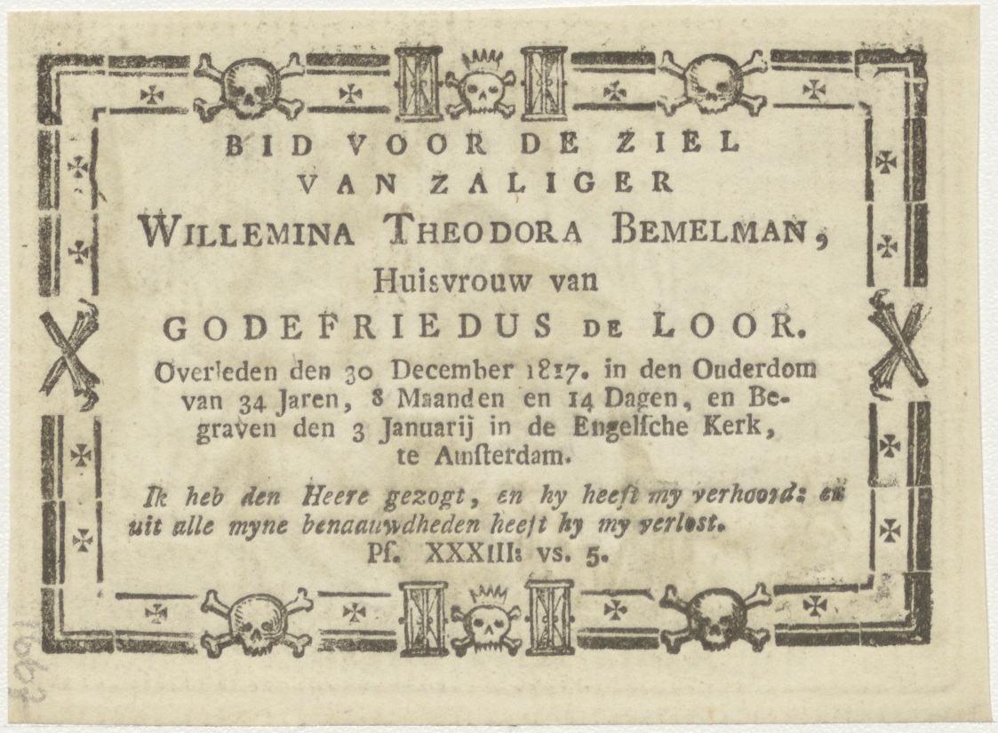 H. Familie, kz. Bid voor ziel Bemelman-De Loor (+1817);Engelsche Kerk;Amsterdam;
