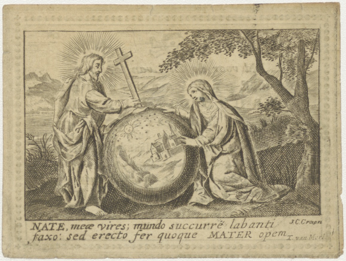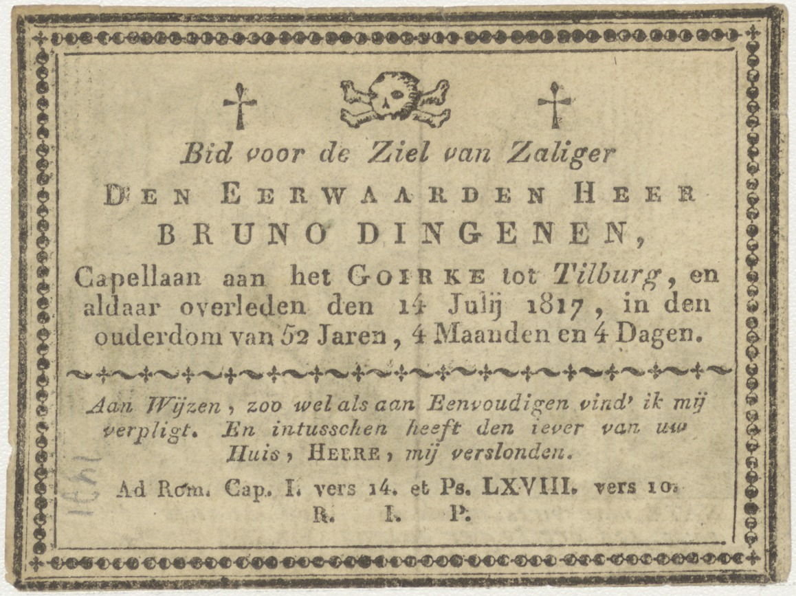 Christus en Maria met wereldbol, kz. Religieus;Bid voor ziel Bruno Dingenen (+1817);kapelaan Goirke;Tilburg;