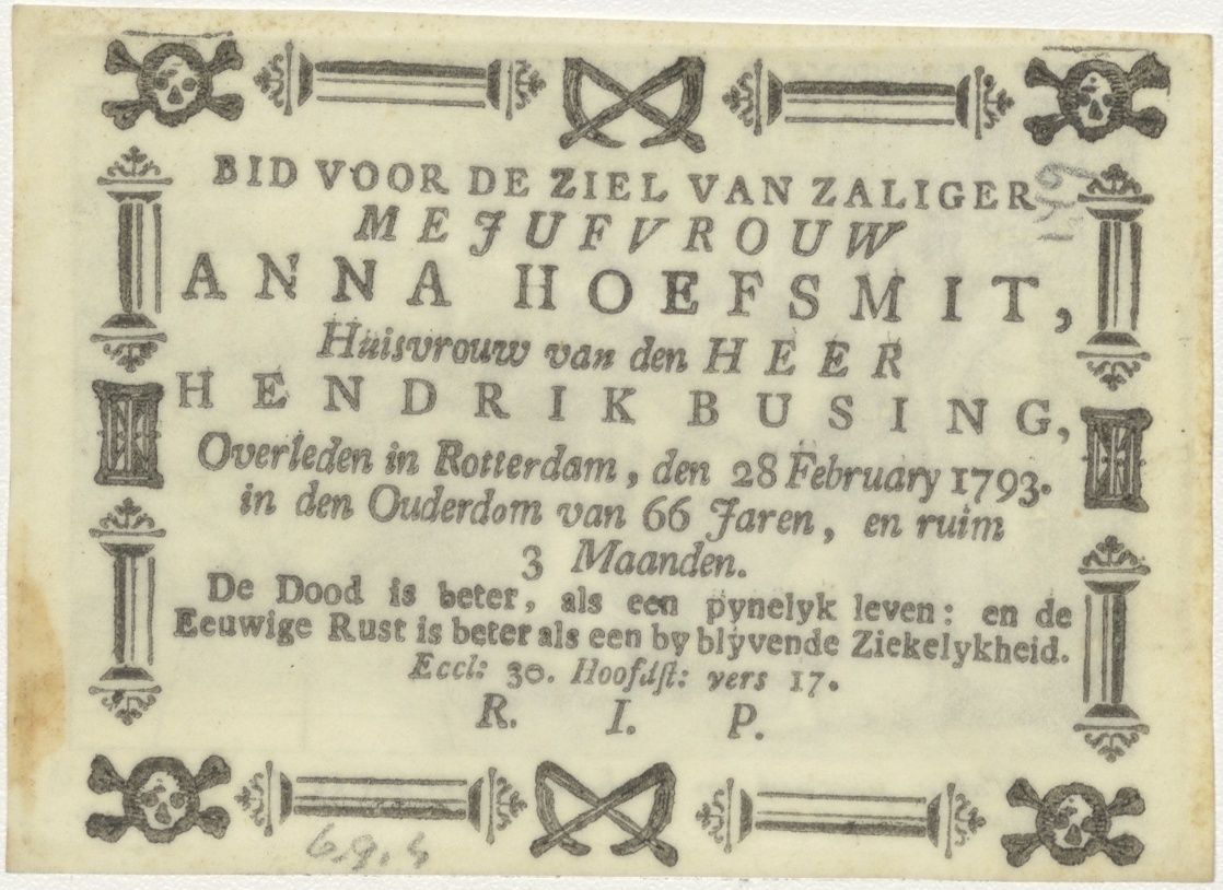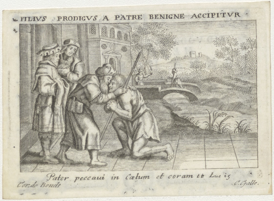 Terugkeer van de verloren zoon (Luc.15), kz. Bid voor ziel Hoefsmit-Busing (+1793);Rotterdam;