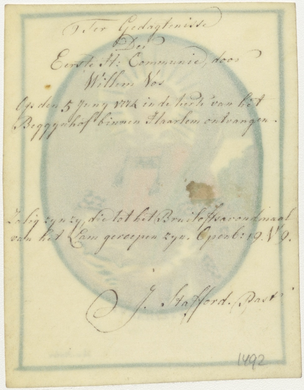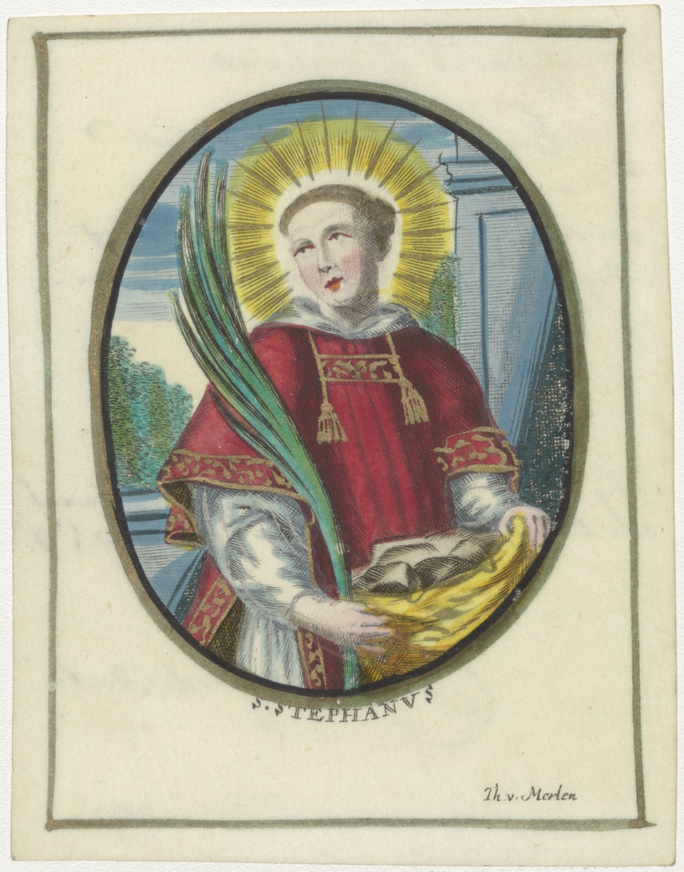 H. Stephanus, ingekleurd, kz. H. Communie Vos Begijnhof Haarlem;doop pastoor J. Stafford;