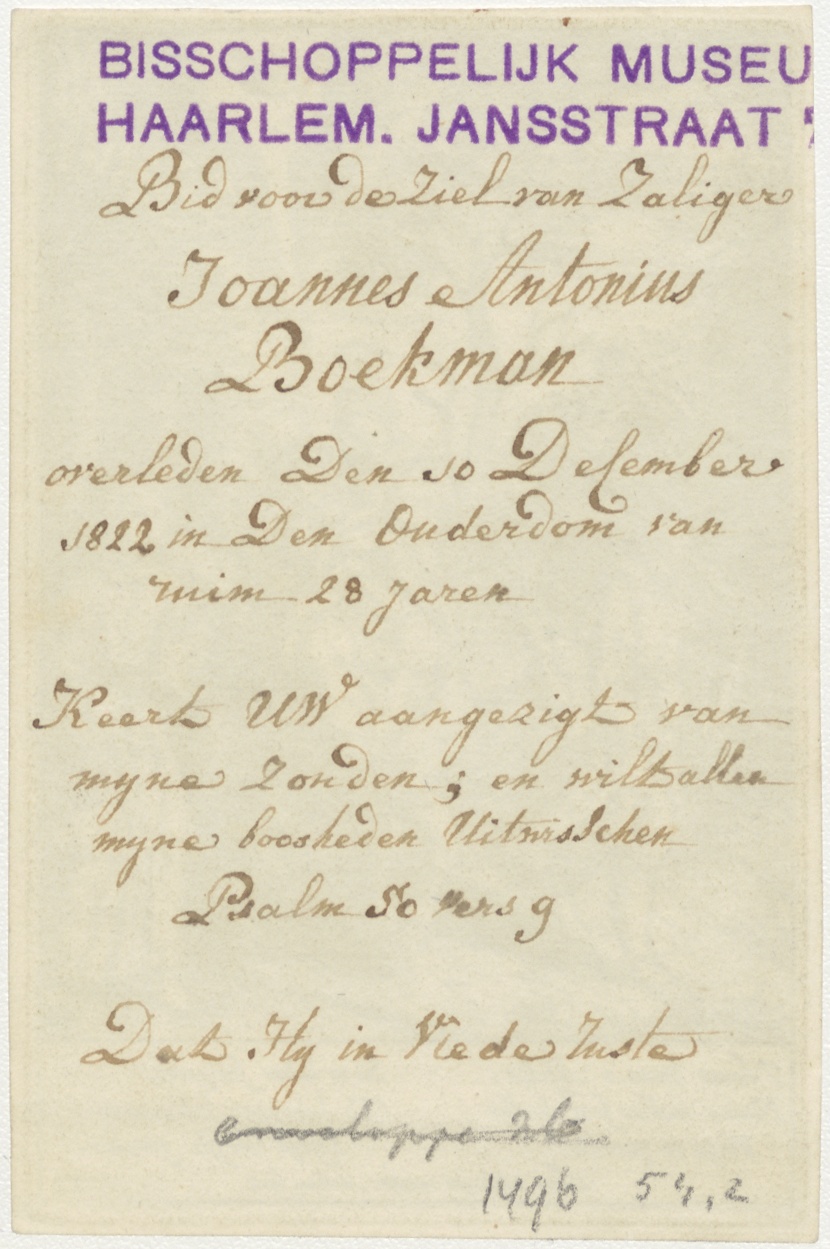 Vlucht naar Egypte, kz. Bid voor ziel Boekman (+1822);Haarlem;