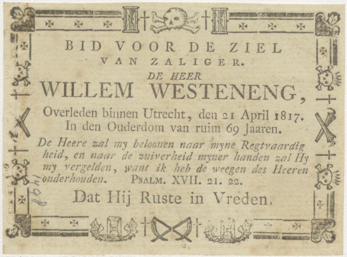 Maria met Christuskind en twee engeltjes, kz. Bid voor ziel Westereng (+1817);Utrecht;