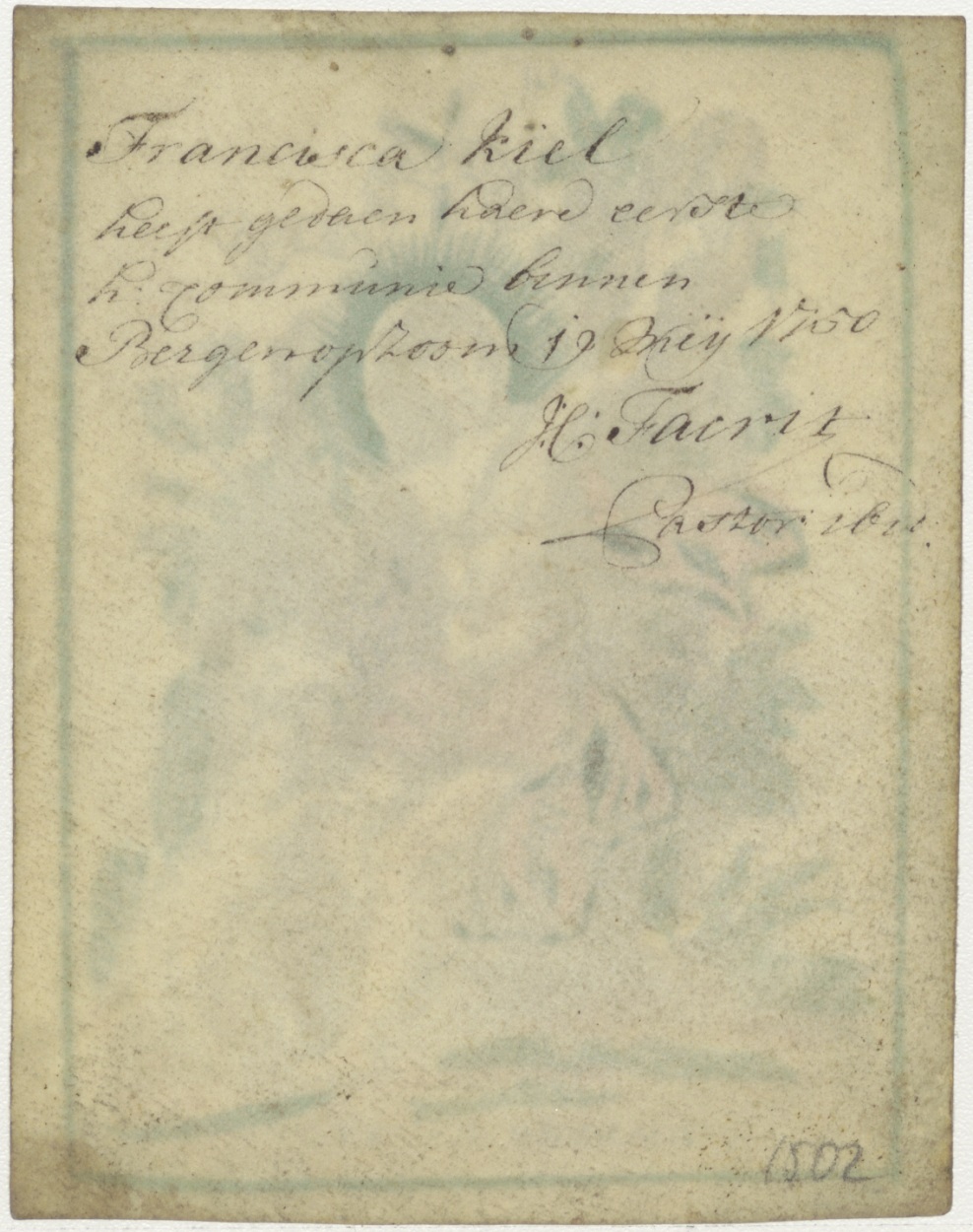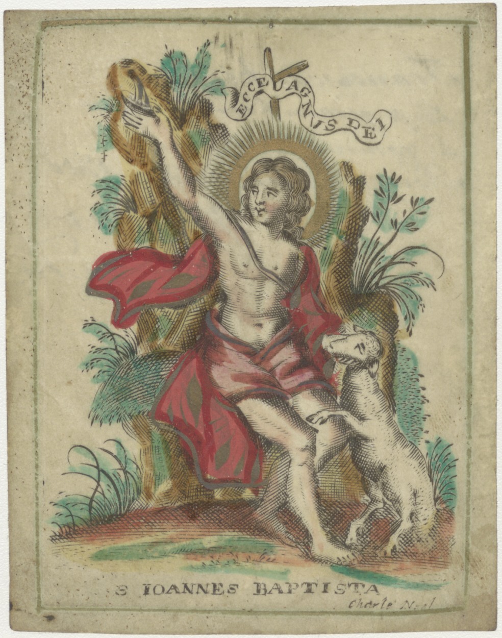 H. Joannes Baptista (Johannes de Doper), ingekleurd, kz. H. Communie Kiel;1750;Bergen op Zoom;pastoor Facrit(?);