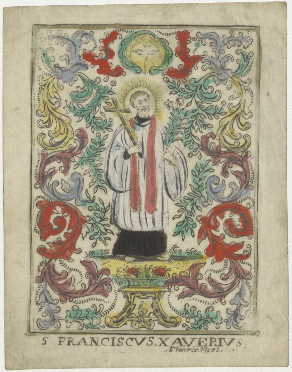 H. Franciscus Xaverius, ingekleurd, kz. H. Communie Kiel;1755;Bergen op Zoom;pastoor Facrit(?);