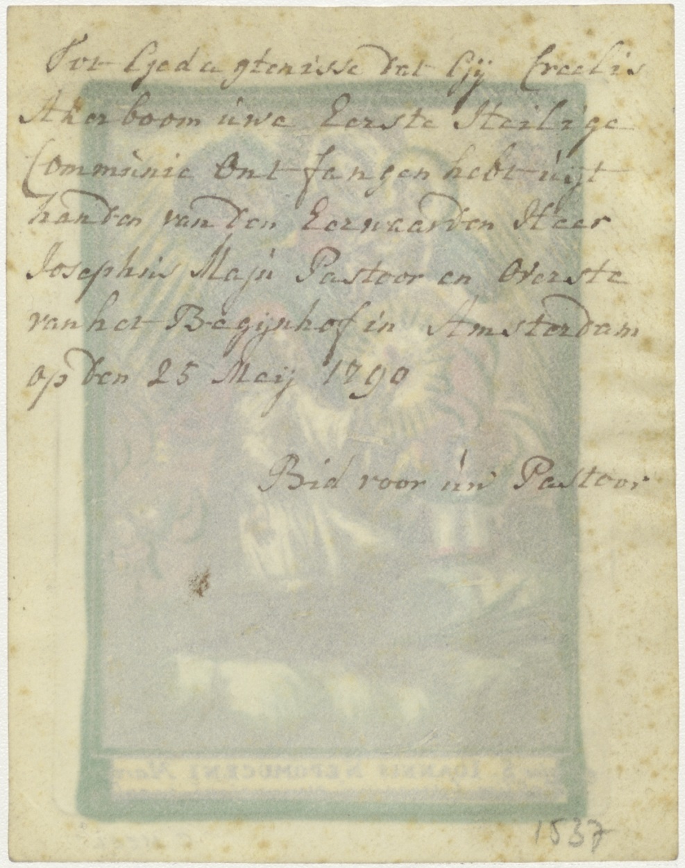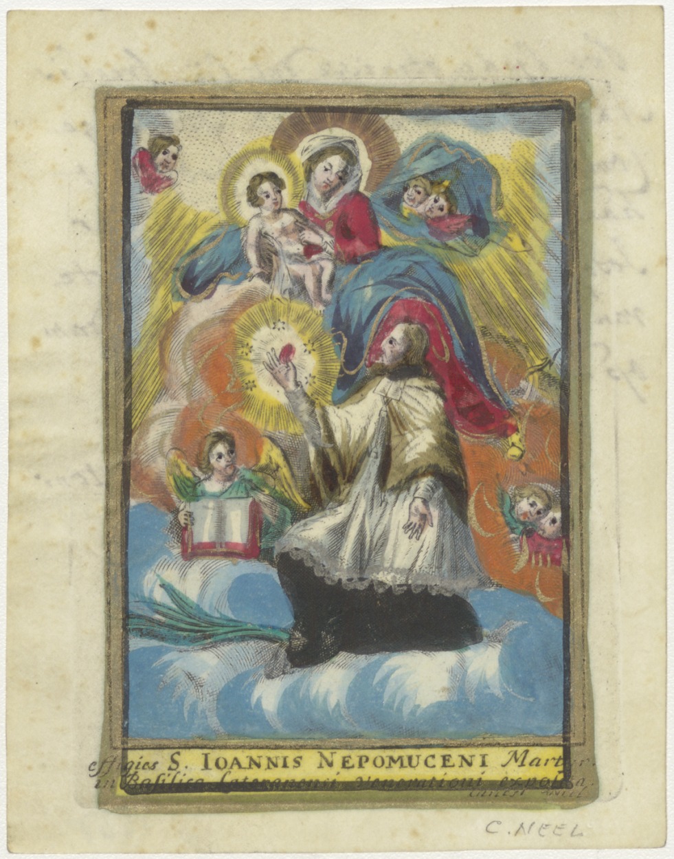 H. Joannes Nepomuceni (Johannes), ingekleurd, kz. H. Communie Akerboom door pastoor Josephus Maja;Begijnhof;Amsterdam;
