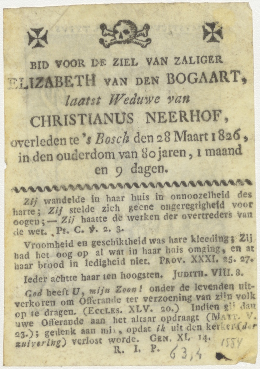 Mozes en de slang, kz. Bid voor ziel Bogaart-Neerhof (+1826);Den Bosch;
