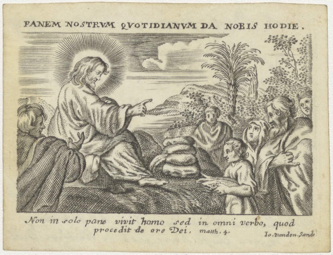 Christus predikt de wonderbaarlijke broodvermenigvuldiging (Mat.4), kz. Bid voor ziel Van der Velden-Van Abenes (+1797);Rijpweetering;