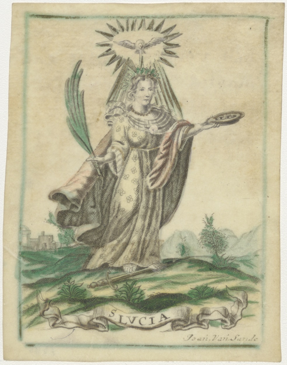 H. Lucia, ingekleurd, kz. religieus;Bid voor ziel Maritje Jans, geestelijk dochter (+1724)
