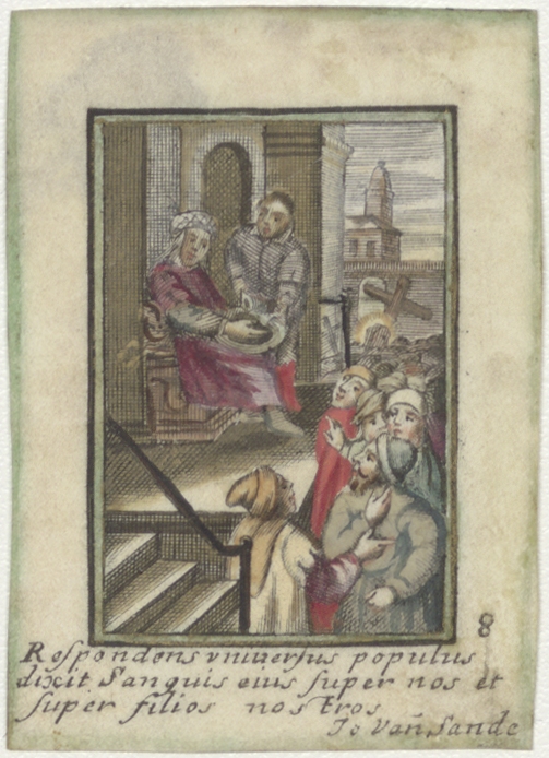 Passiescène (serie), Christus, 8, Christus voor Pilatus, die zijn handen in onschuld wast, ingekleurd