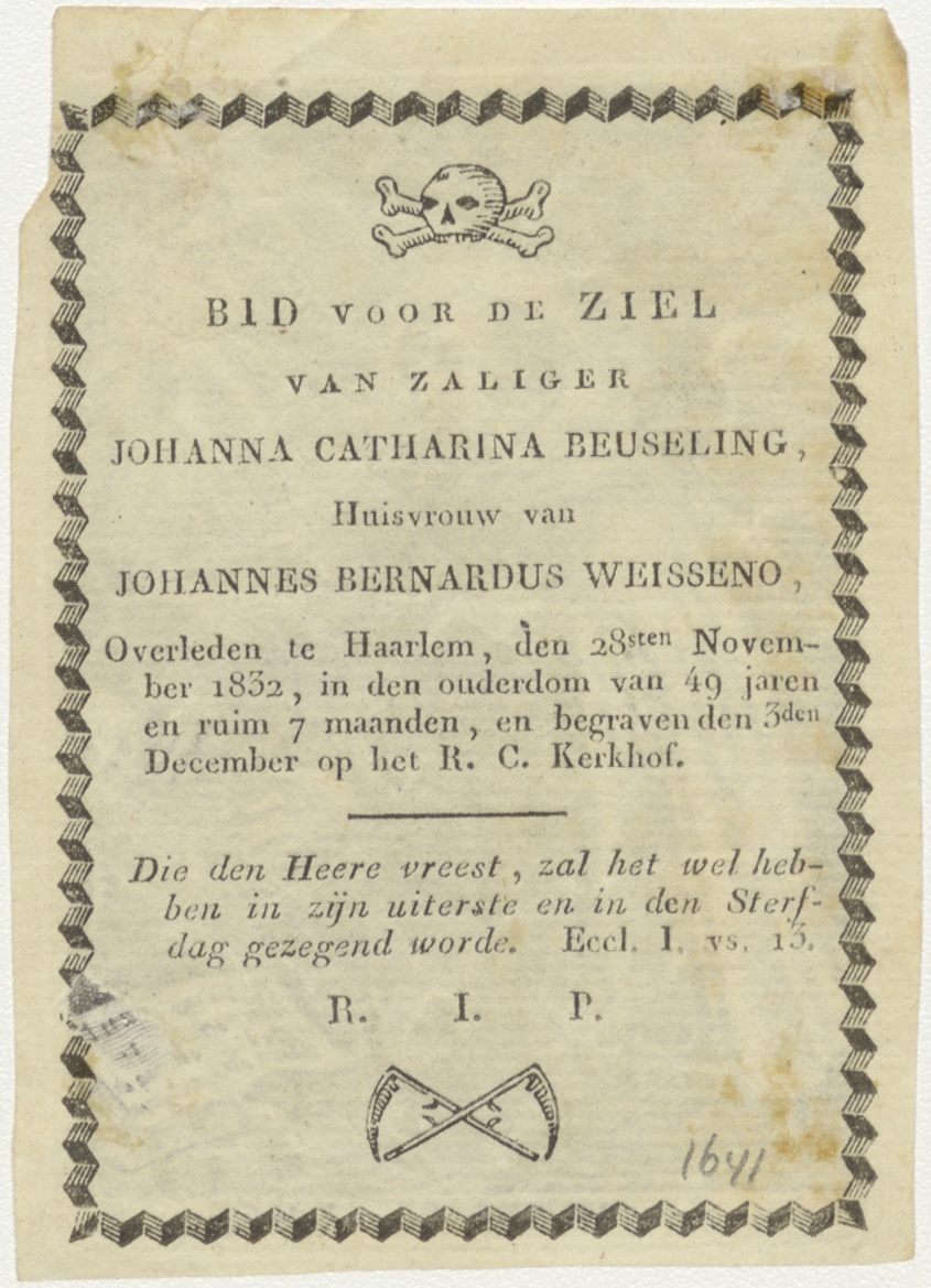 H. Johannes van het kruis (Joannes a Cruce), kz. Bid voor ziel Welsseno-Beuseling (+1832);Haarlem;