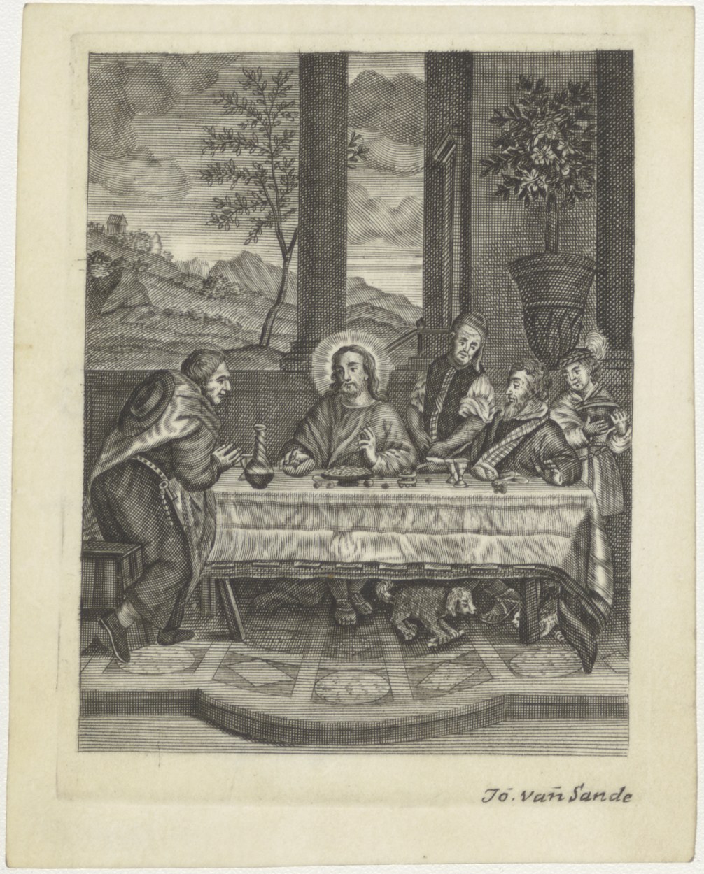 Christus en de Emmausgangers, kz. Van Kuyl met gebed