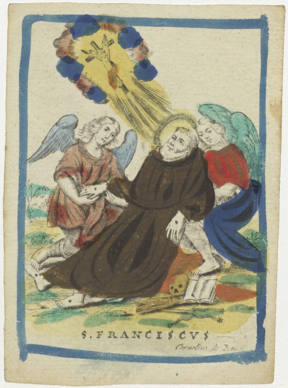 H. Franciscus ondersteund dor twee engelen, ingekleurd