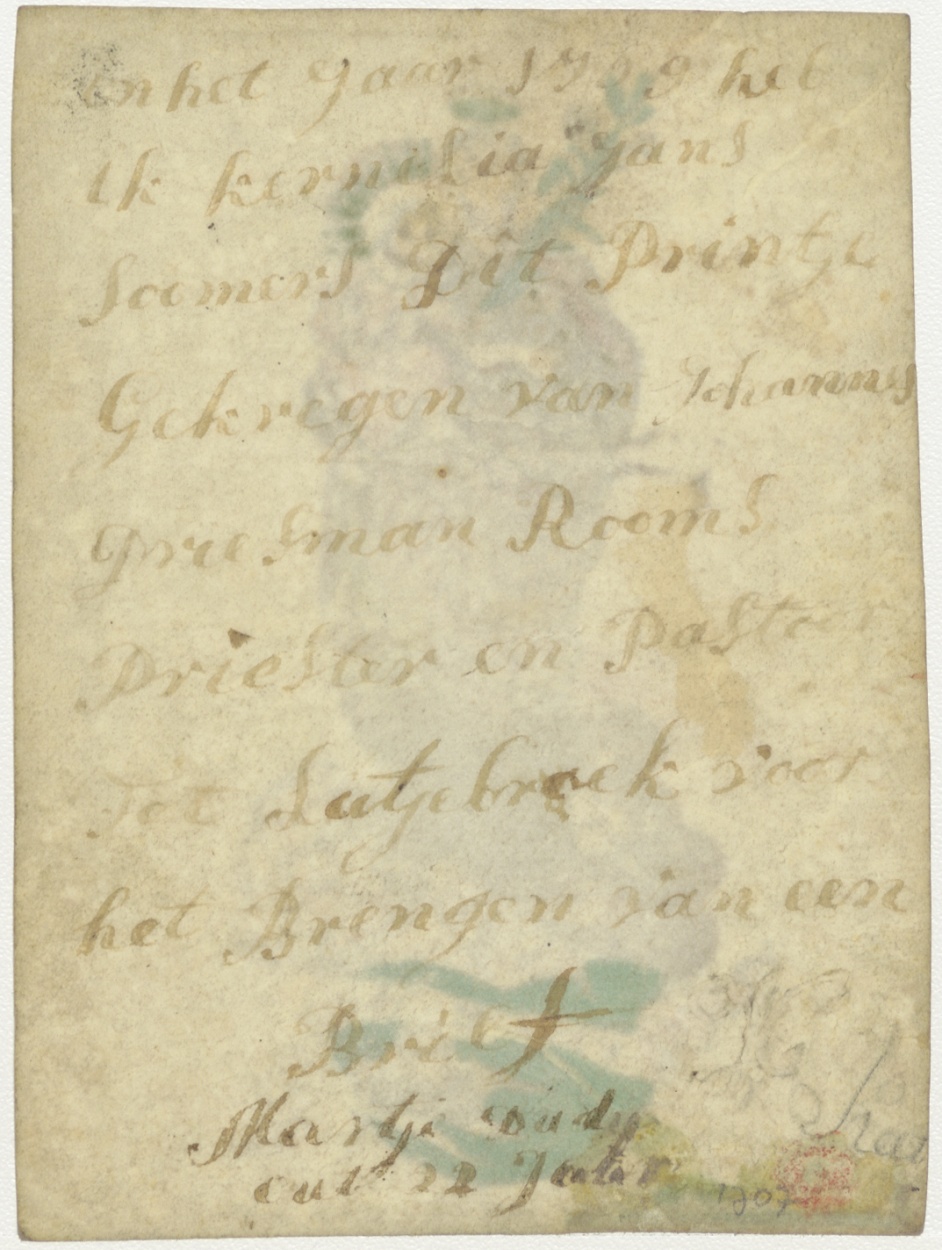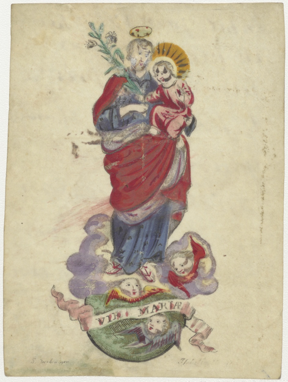 Jozef met Christuskind, ingekleurd, kz. Beloning Soomers in 1709;pastoor Johannes Presman te Lutjebroek