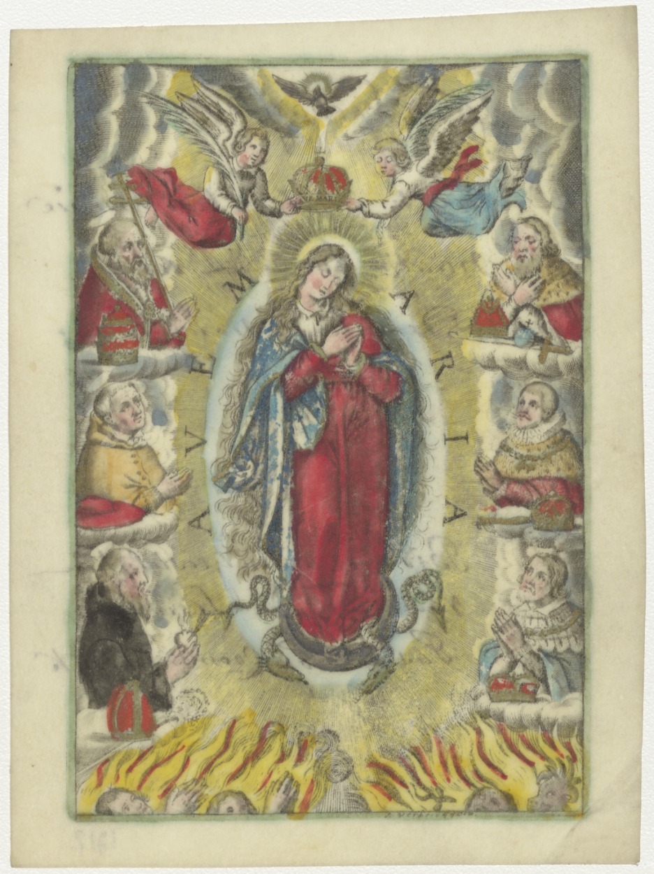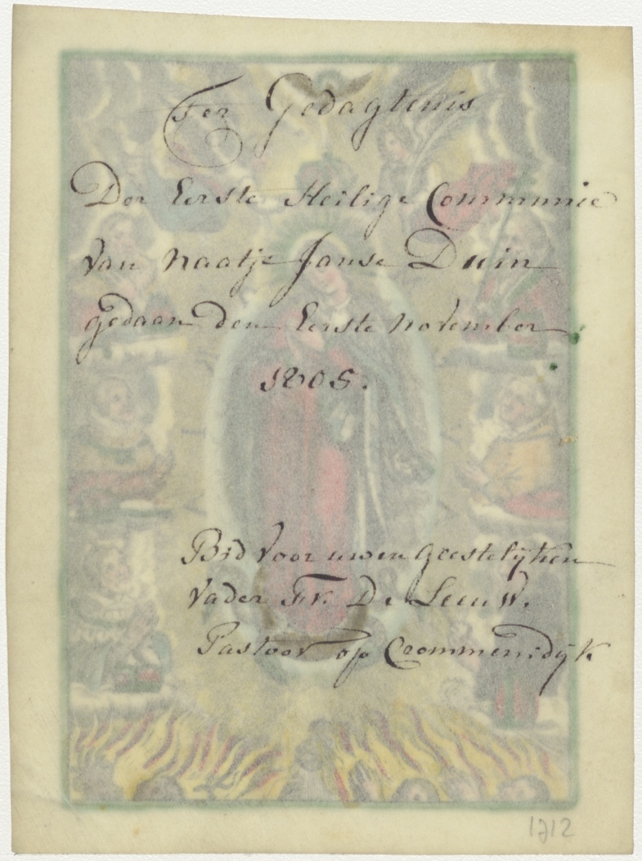 Kroning van Maria, ingekleurd, kz. H. Communie Duin;1805;door pastoor Fr. de Leeuw;Crommendijk;