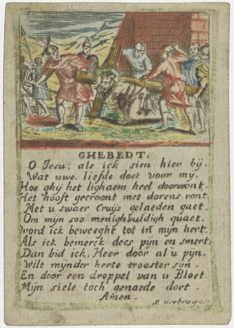 Passiescène, Christus val onder het kruis, met gebed, ingekleurd, kz. 1801;Steen van Jaanous(?);