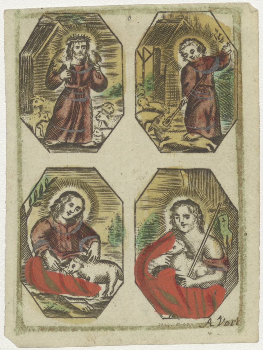 H. Johannes als kind in vier afbeeldingen, ingekleurd