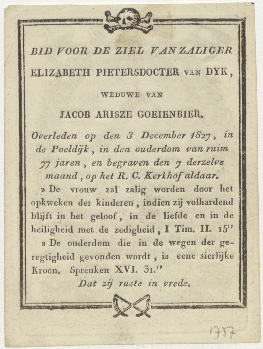 H. Maria Magdalena, kz. Bid voor ziel Goeienbier-Pietersdochter van Dijk (+1827);