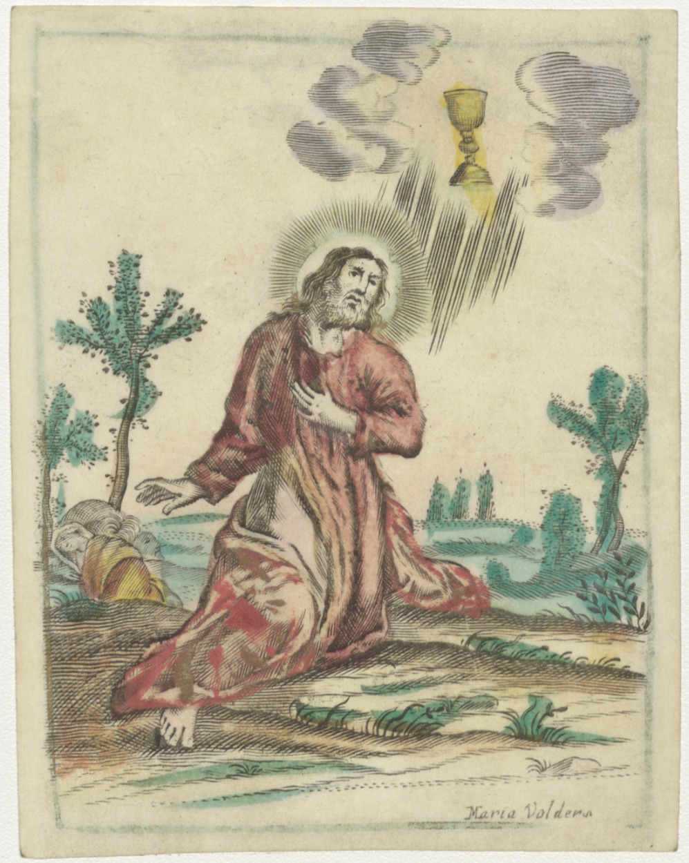 Christus in de olijftuin (Getsemané) met kelk uit de hemel, ingekleurd, kz. Tomputte;1760;
