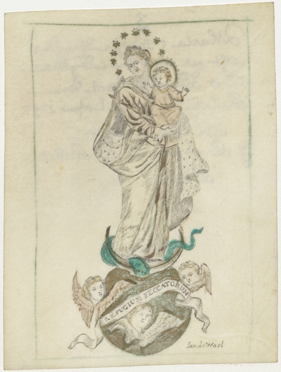 Maria met Christuskind, refugium peccatorum, ingekleurd, kz. H. Communie;1757;(?);