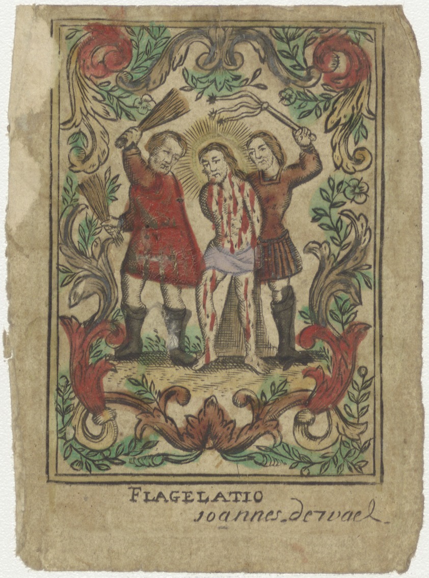 Flagelatio, marteling van Christus, passiescène, ingekleurd