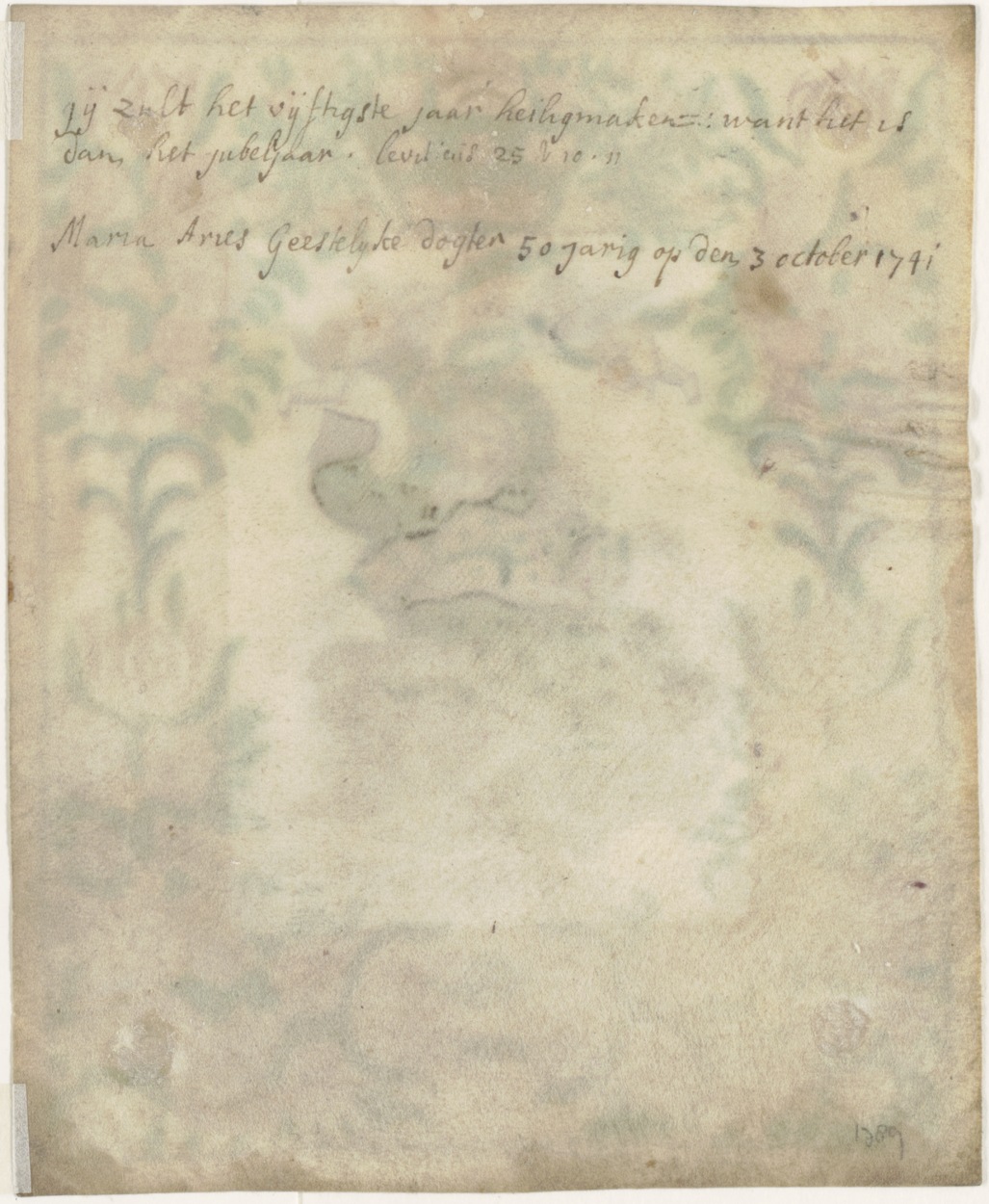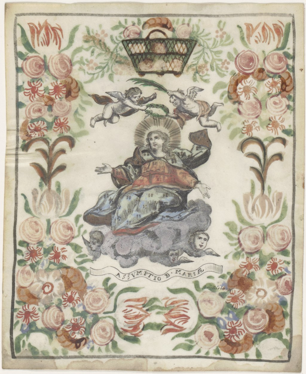 Hemelvaart van Maria, ingekleurd, kz. Religieus;50 jarige Maria Aries;geestelijk dogter;1741;