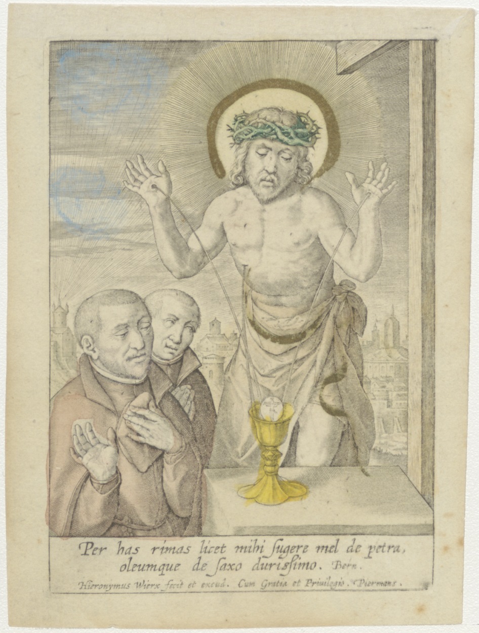 Christus wiens bloed in kelk stroomt, ingekleurd