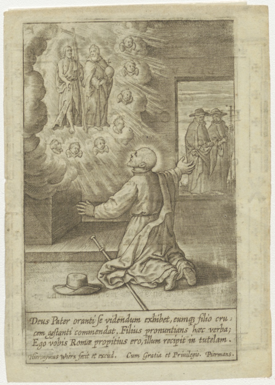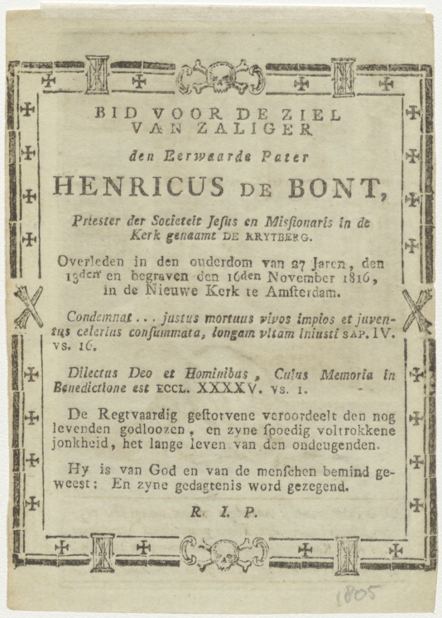 Verschijning van Christus en God de Vader aan Jezuïetenmonnik, kz. Religieus;Bid voor ziel Henricus de Bont (+1816) S.J. pastoor de Krijtberg;Amsterdam;